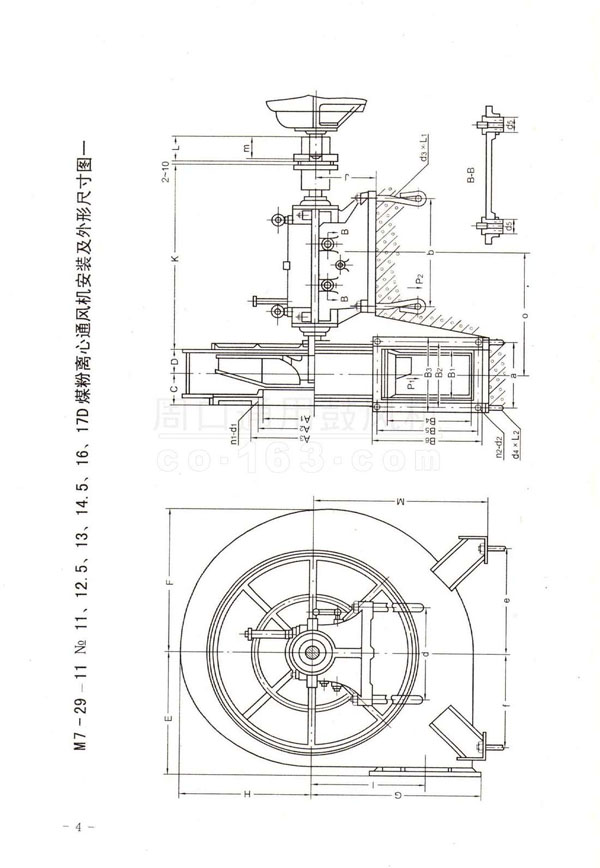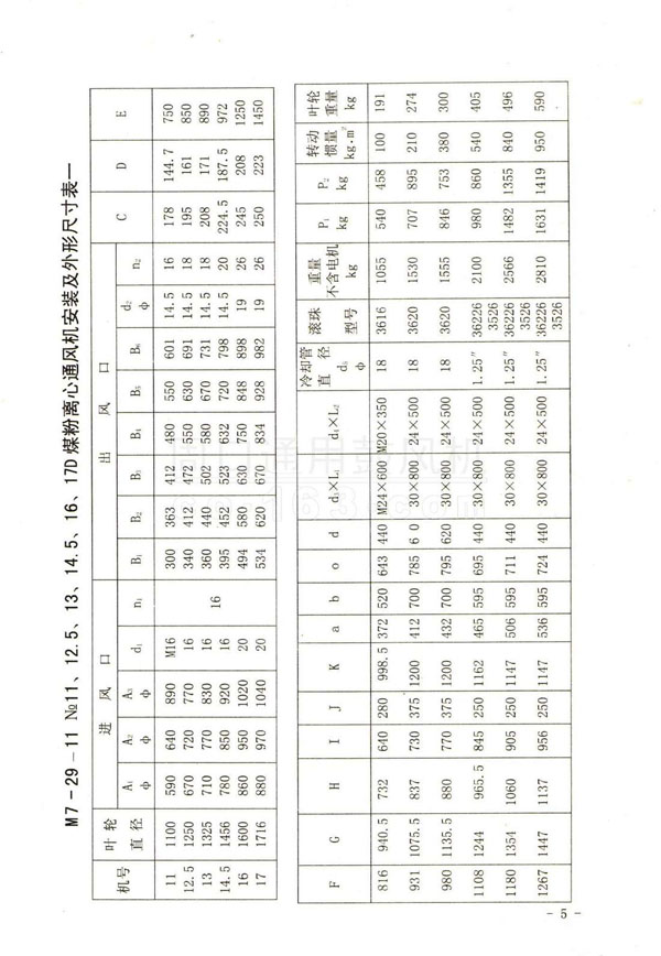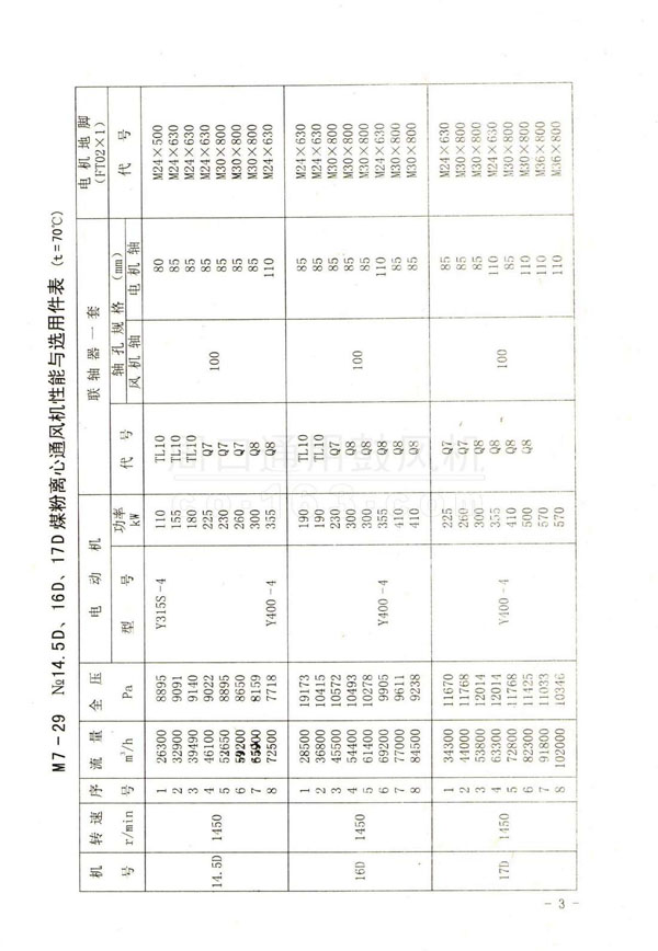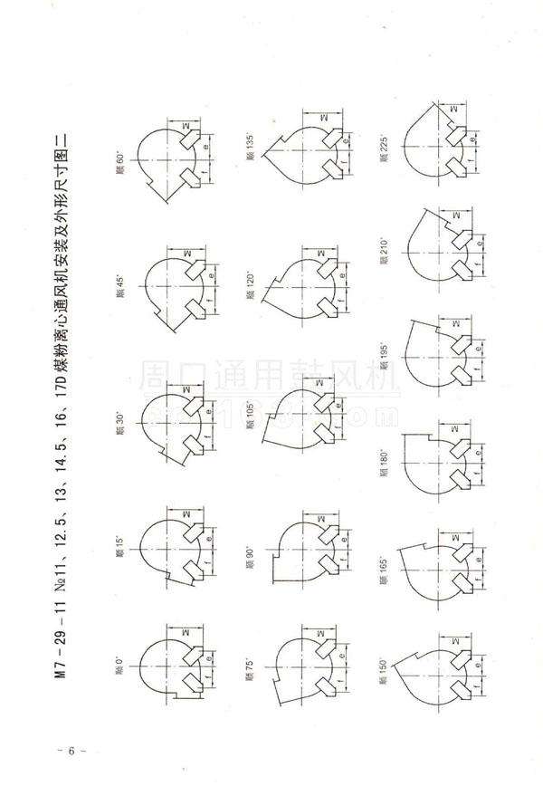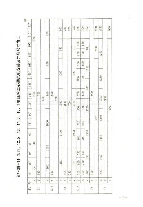三、型式⑴ 本風機為單吸入式,由M7-29№11、12.5、13、14.5、16、17六個型號組成。