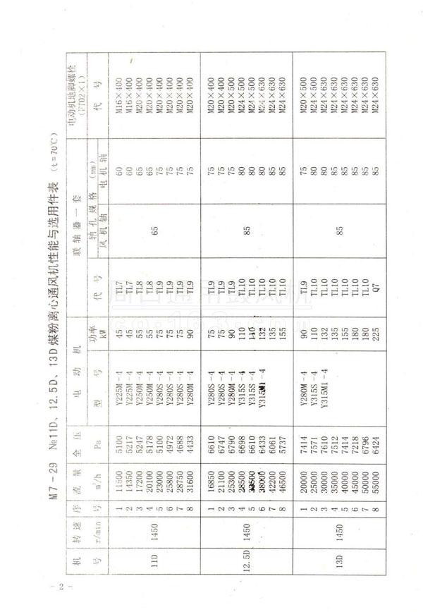 | M7-29№ 11 D | 1450 | 1 | 5099~5217 | 11500~14350 | Y225S-4 (380V) | 37 |